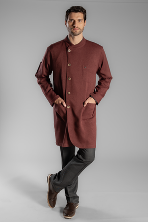Com corte de alfaiataria e vista trêspassada, ele apresenta uma gola assimétrica que traz um toque moderno.